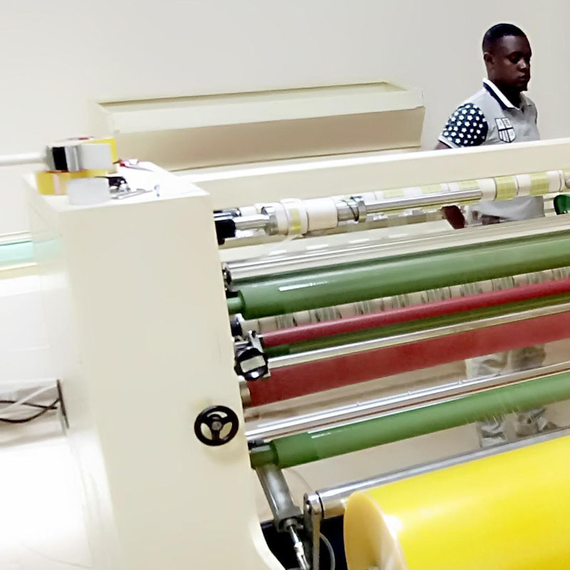 適用范圍:適用于各類透明封箱膠帶、印字印刷封箱膠帶半成品母卷的分條加工